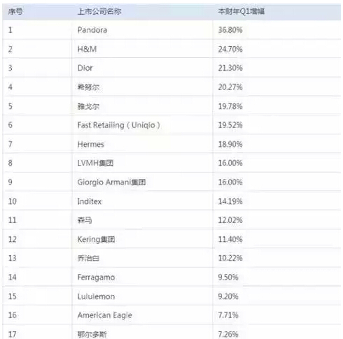 3大快时尚品牌保持两位数上涨,但美国品牌gap、a&f出现负增长。
