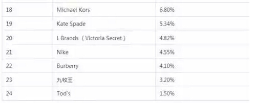 轻奢品牌kate spade,michael kors,furla都保持上涨趋势,但coach出现了双位数的业绩下滑。