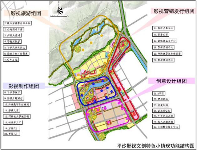 从规划上看,影视制作、影视营销发行、影视旅游和创意设计,是平沙影视文化小镇的四大板块。围绕这四大特色功能区,特色小镇将建设成为集摄影制作、创意设计、影视发行、影视体验等多项功能于一体的国际影视文化创作基地和贸易交流平台。