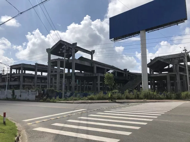 因项目的搁浅,模具城门口新建的马路也成了隔壁工厂的停车场,断头路至今没有名字。有两三家大型工厂和该停工项目仅一街之隔,在工厂上班的老林告诉第一财经记者,对面这片施工工地自他来后就是这副样子,“有两年多了,听说老板资金链出了问题,工人的钱也没还,还有人买了铺子。”