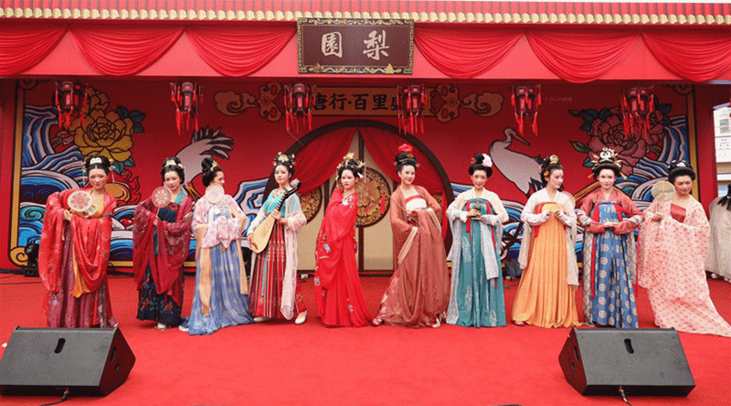 广州百信广场“大唐行·百里盛世”活动从2019年4月20日持续到6月9日。现场精心为消费者打造融合唐代元素和现代化元素的打卡点,如:《胡月楼》视觉展专区,六大场景如醉花阁、饮碧阁、伊人阁、聆音阁、棋轩阁、四季阁,高度还原御花园、唐“潮”古街等大唐场景;此外,还将围绕成人礼、汉婚、开笔礼、端午节传统礼仪及节日举办四场生活文化专场;另外,在活动期间,逢周末定时举行声势浩大的千人汉服巡游活动。