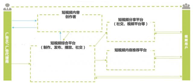 我们以短视频产业链为主,短视频内容的创作者产生内容,通综合平台发布,再分发给分享与推荐平台,最后到用户的手中,一起形成一个基本框架。