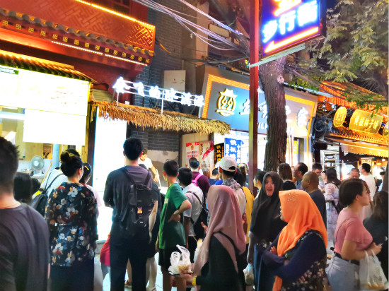 众所周知,知名旅游景点必然是人头攒动。而回民街就将这种人流如织的境界发挥到了极点。无论或早或晚,只要去到回民街,必然会看到那里人流如潮。各式各样的叫卖声混杂着人群的嘈杂,道路中间的公共垃圾桶让摩肩接踵的人群更加举步维艰,看似不长的一条美食街,一趟走下来却足以让人身心俱疲,探寻美食的体验之旅也因此大打折扣。