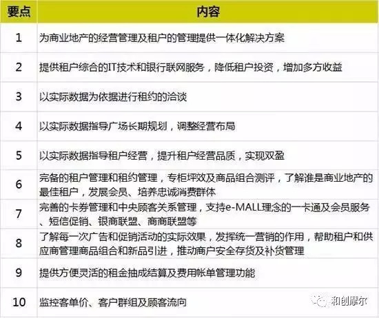 需要导入专业摩尔管理软件系统,信息能多种方式导入,数据有效共享,统一租户租约管理、往来管理、会员管理,有效指导广场的经营策划,通过追踪顾客消费信息了解顾客需求、指导租户经营。