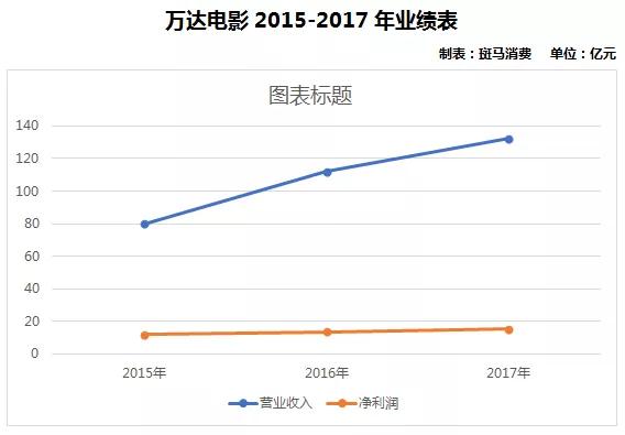万达影视2016年、2017年、2018年一季度的营业收入分别为9.95亿元、20.20亿元、8.84亿元,净利润分别为3.64亿元、5.96亿元、4.07亿元。