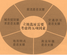 3)选址要分析街道特点与客流规模的关系,街道交叉路口客流最多,是选址的最好位置。