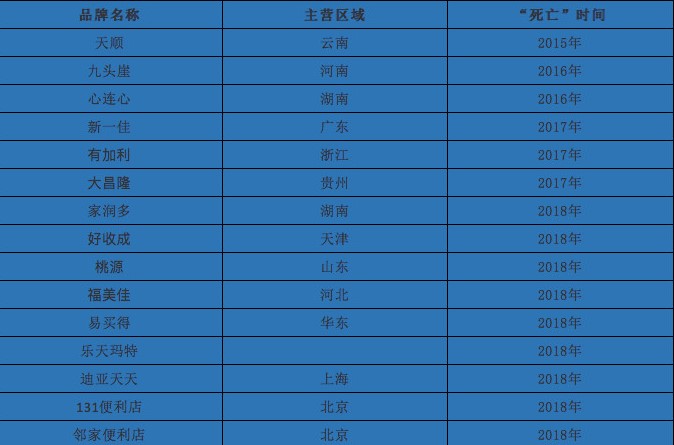 近年零售商超部分死亡名单