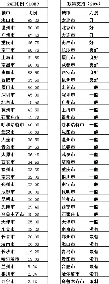 由于中国南北跨度较大,受气候、生活习惯等因素影响, 24小时营业便利店的区域性特点较为明显,南北方24小时便利店比例存在明显差异。南方地区城市的24小时便利店比例普遍高于北方地区。从全国范围来看,24小时营业便利店的平均占比较低。