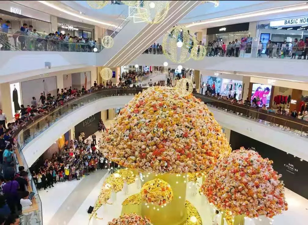 位于商场1f主入口中庭内的花开万象美陈空间,还未开业就成功刷屏社交圈,开业后也持续吸引不少消费者前往打卡。