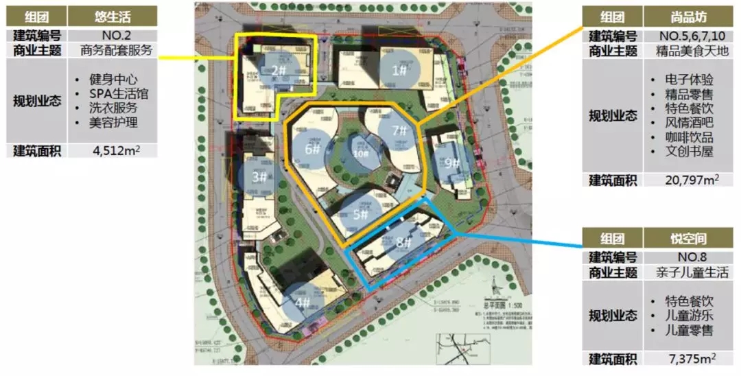 · 悠生活:体量约4512㎡,将作为商务配套服务,布局健身中心、spa生活馆、洗衣服务、美容护理等业态。