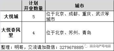 • 大悦城2020-2022年计划开业项目9个。