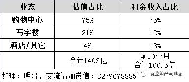 华润商业地产以购物中心为主,购物中心租金及资产比重均达到75%