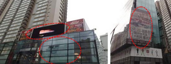 高处设置大面积平面广告和大型液晶屏幕,动态广告。
