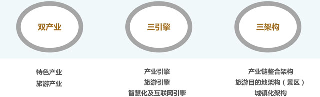 “三架构”即产业链整合架构、旅游目的地架构(景区)和城镇化架构。
