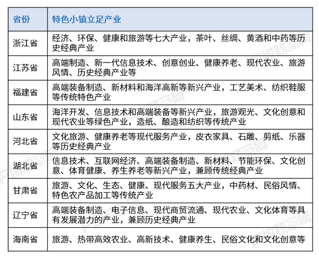 表:部分省份特色小镇立足产业