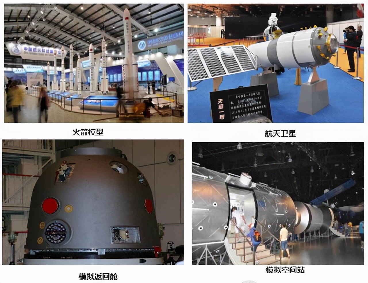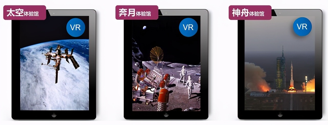 展示已公开的最新型的火箭、航天卫星、返回舱、空间站等模型,利用vr技术,生动地还原飞船发射升空体验,内部循环播放与讲解宇航员在太空舱的生活起居的视频录像。