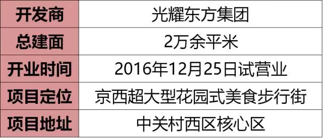 食宝街隶属于光耀东方集团旗下的“中关村·东方创业谷”项目。位于中关村西区核心区,定位于“京西超大型花园式美食步行街”,总建筑面积2万余平米,是北京西部区域“大规模、全品类、全天候”的花园式美食步行街。