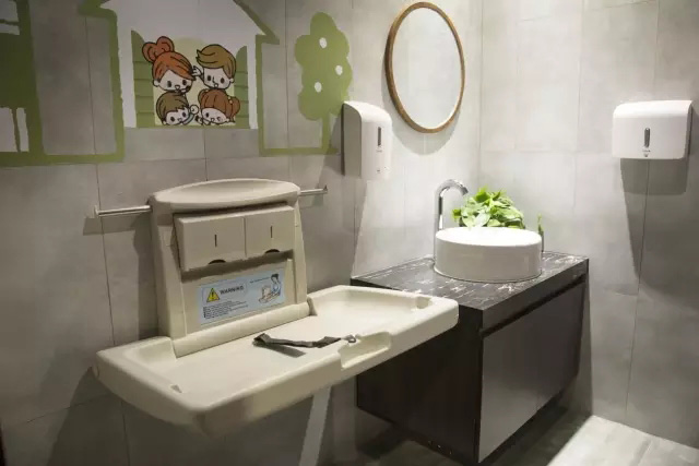 从规划布局来说,食宝街增加了育婴室,女卫增设了化妆间,做到从女性角度出发,避免长时间停留在洗手盆前影响其他人;