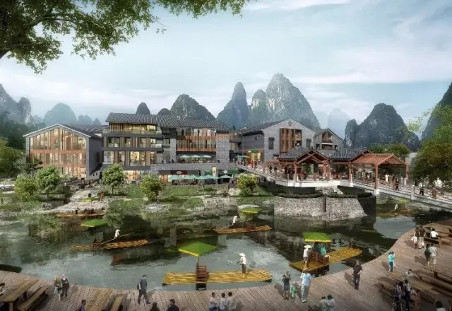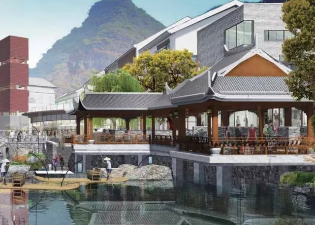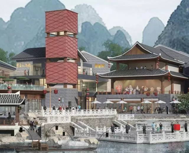 此外,项目还规划了同心桥、水月坊、古戏台、西街塔四个特色风情建筑,呈现出别具一格的阳朔风情,最大限度地还原了阳朔的历史风貌。