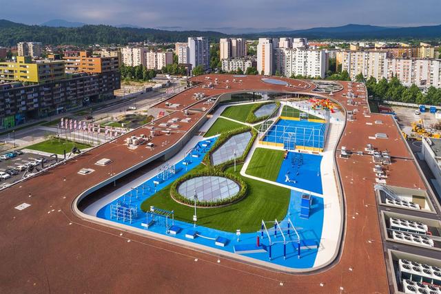 斯洛文尼亚首都卢布尔雅那东北部的 šiška 区刚刚开业了一家 aleja 购物中心,面积3.2万方。在中欧小城,aleja 的体量可看做城市区域级商业,但它依然为满足周围社区而建立了一个屋顶体育场。