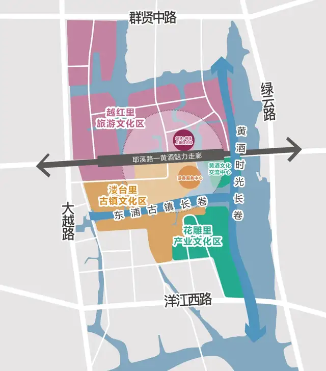 根据规划,黄酒小镇将围绕花雕里、越红里、溇台里三大板块进行开发建设,打造世界一流黄酒文化标杆和世界级黄酒文化旅游目的地。