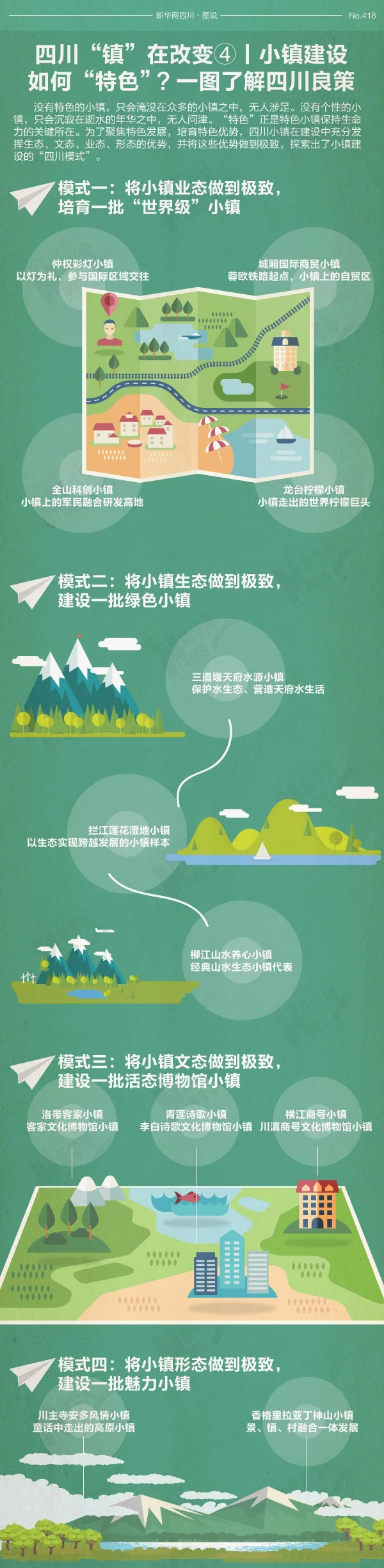 没有特色的小镇,只会淹没在众多的小镇之中,无人涉足。没有个性的小镇,只会沉寂在逝水的年华之中,无人问津。“特色”正是特色小镇保持生命力的关键所在。为了聚焦特色发展,培育特色优势,四川小镇在建设中充分发挥生态、文态、业态、形态的优势,并将这些优势做到极致,探索出了小镇建设的“四川模式”。