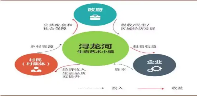 该项目通过大规划(产业规划及公共配套)、大招商(五大产品体系)、大物业(智慧社区)、大众筹(自住地产、商业地产、经营地产)等四类平台内容,构建浔龙河商业平台体系。当地村民通过提供乡村资源,实现经济收入和生活品质双提升;企业通过投入资本,获取投资收益;政府通过提供公共配套和社会保障,获取税收/民生/区域经济发展。