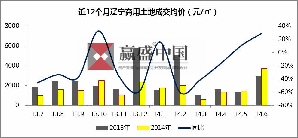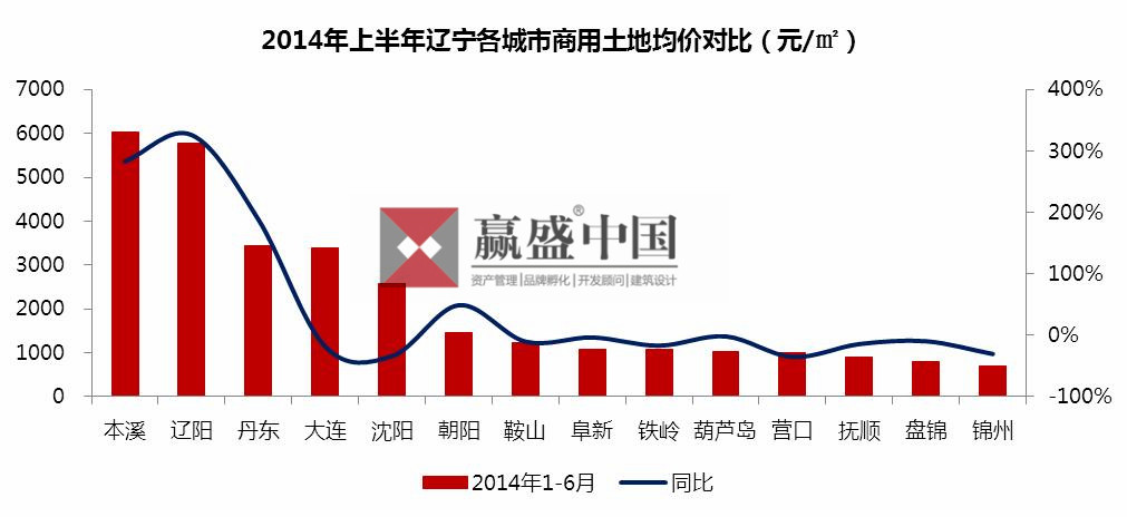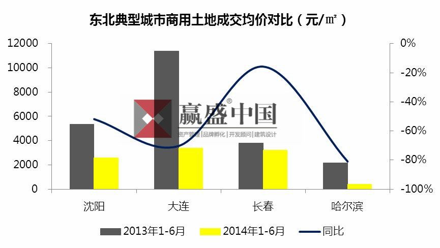 2014年前6个月,大连商用土地成交均价3378元/平方米,排名首位;其次是长春,商用土地成交均价3205元/平方米。