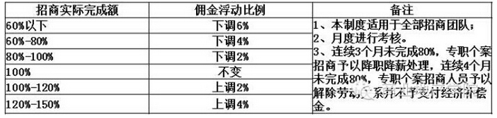 1)若招商部门人事发生变动,其计提原则如下:原招商计提80%佣金,后续交接工作的招商代表计提20%佣金。
