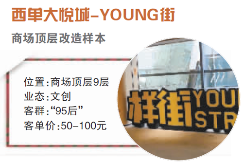 主题街区“样街”位于西单大悦城的9层,也是商场的顶层。经改造后,该区域的坪效提升50.8倍。据西单大悦城相关人员透露,这些数码商家因经营效益不好退场后,该区域几近闲置。改为样街之后,客流便逐日增加。该人员还介绍,样街以“多次元”、“动漫”、“萌宠”等场景为主。北京商报记者走访西单大悦城看到,该街区整个墙体以漫画为主,吸引了许多消费者在此拍照、打卡。但从购买率来看,该街区主打文身、电竞、陶艺等体验业态,价格上百元,消费者多是观望状态。对于商家是否能保障收益还处于未知结果。