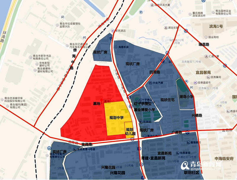 据了解,宜昌路31号地块曾经共由三家老企业共同持有,其中包括双桃精化、亨斯迈纺织染化和青岛德瑞皮化。2014年5月中旬,双桃地块部分就已进行过第二次环评公示,土地用途变更为商住用地。按照青岛市“环湾保护,拥湾发展”、“退市入园”的战略,老四方片区的众多老企业都陆续拆迁改造,腾挪出大量的城市黄金地块,未来将打造成全新的城市综合体。