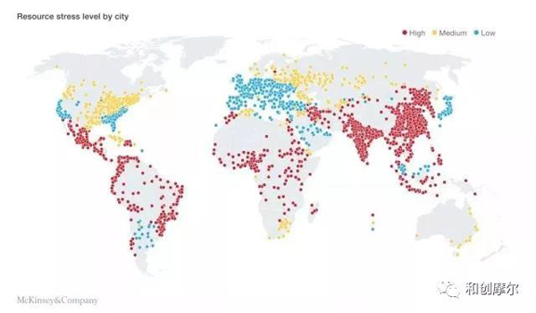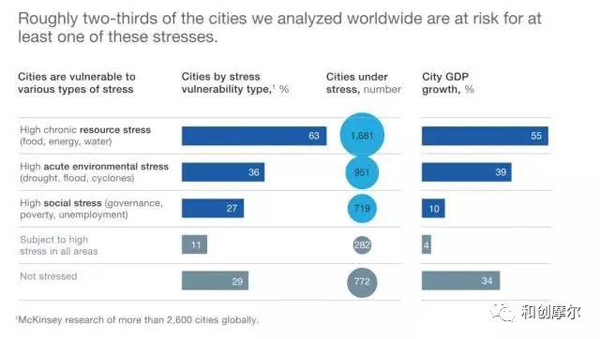 麦肯锡在全球范围内分析的大约三分之二的城市面临至少其中一种压力的风险。