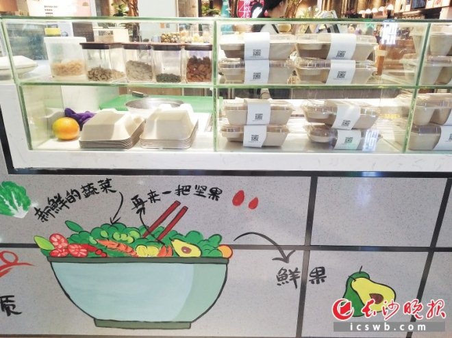 主打各式沙拉、低热量菜式的轻食餐厅日益走俏长沙。长沙晚报实习生 刘文争 摄