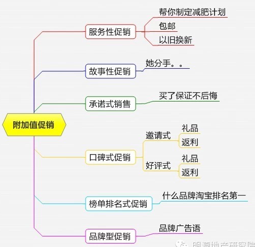 十五种方式见下图(定价促销、附加值促销、回报促销、纪念式促销、奖励促销、借力促销、临界点促销、另类促销、名义主题促销、时令促销、限定式促销、引用举例式促销、赠送类促销、指定促销、组合促销)。