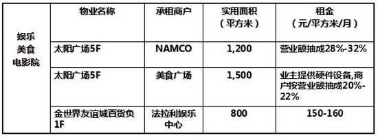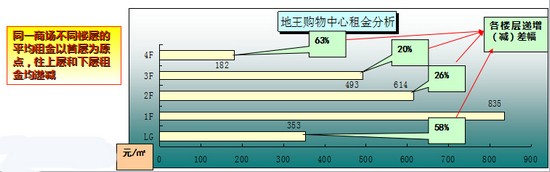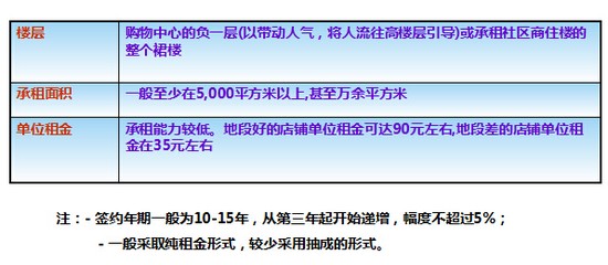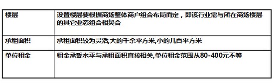 百货公司—承租面积最大,承租水平最高,放在商场最佳位置;