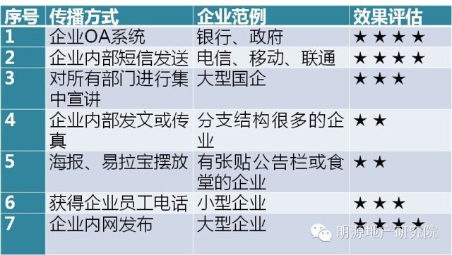 dm单派发:通过赠送小礼品给保安赠送,允许置业顾问在团购单位写字楼门口派发dm单页、员工停车棚内各电动车、私家车插放dm单页,上下班高峰期集中派发dm单页,以及现场项目介绍等形式进行宣传;