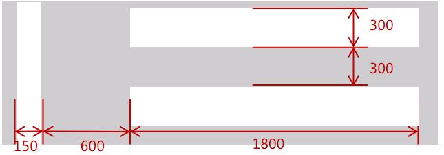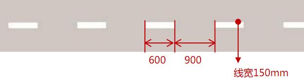 6.双向通行车道应设置车道中心线。车道中心线为白色虚线,用于分隔对向行驶的交通流。其线宽150mm, 长600mm,间隔900mm。(示意图如下:)