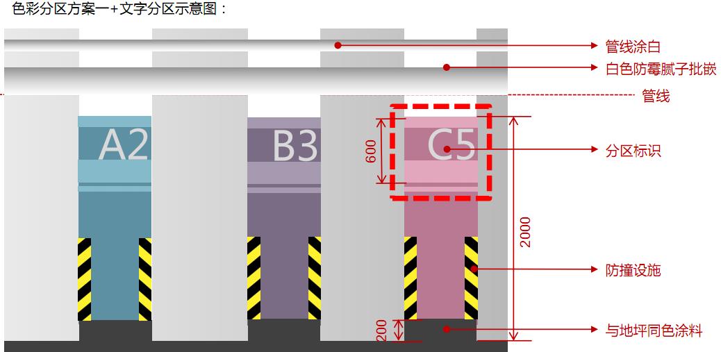 6.地下空间超过3万方的园区,必项设置分区标识,以三个防火分区兯用一分区标识。分区标识可结合地面、墙面、柱等明显突出位置进行设置。