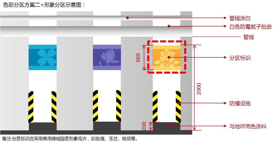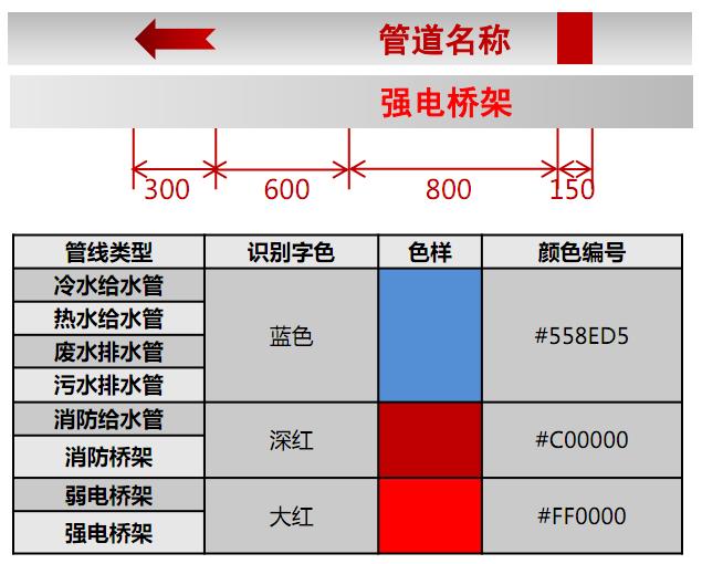 1.当管道做涂白处理时,地下室管道应标注流向、管道名称、示意色环;桥架标识应标注名称。
