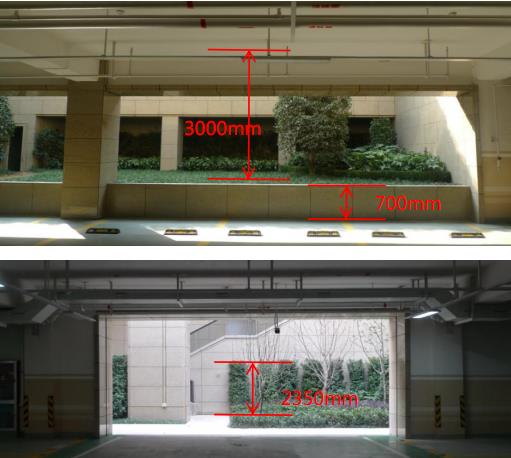 特殊说明:1.b处天井紧贴车库入口,防眩光效果佳。2.该案例因未结合门厅空间设置采光天窗,地下车库中部照度以及地下门厅入户感有所欠缺。