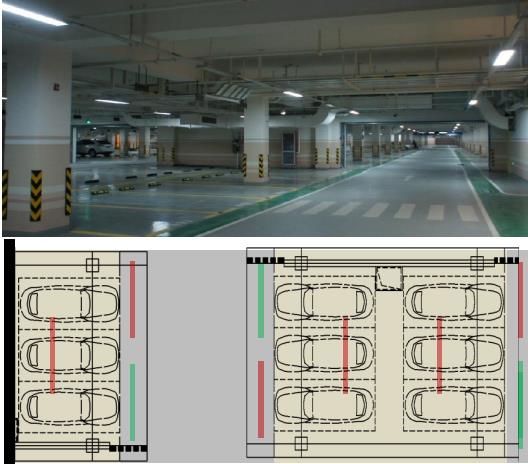 【案例】西溪诚园地下车库人工照明实景(红色为开启,绿色为兰闭)