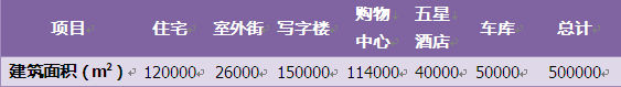 以严寒地区为例,一个50万平方米的城市综合体,各业态面积指标如表2-6所示。