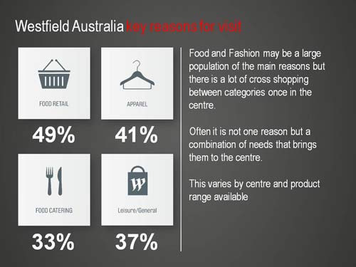其实做商业地产70%同质化是不能避免的,因为做购物中心首先就是要满足基本需求。下图是西田公司对消费者光顾商场的原因总结: