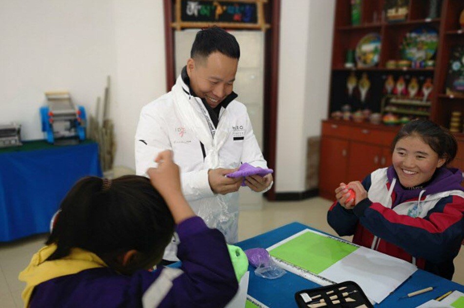 艺术家高孝午老师,一直秉持”当下即是”的观点,在艺术上实践“凡人艺术”。“反差”是他作品中的常态,“矛盾”隐藏在看似平和的形态里,兼具时尚性与国际性。作为此次走进西藏、走进学生们身边的高老师,真实而极具亲和力,非常受学生们喜爱,是学生们眼中创造神奇的偶像,他不仅能用传神的肢体语言表达,与学生们无障碍沟通,更能用专业技能成功征服现场的小朋友,给他们开启了新鲜难忘的雕塑奇幻之旅。