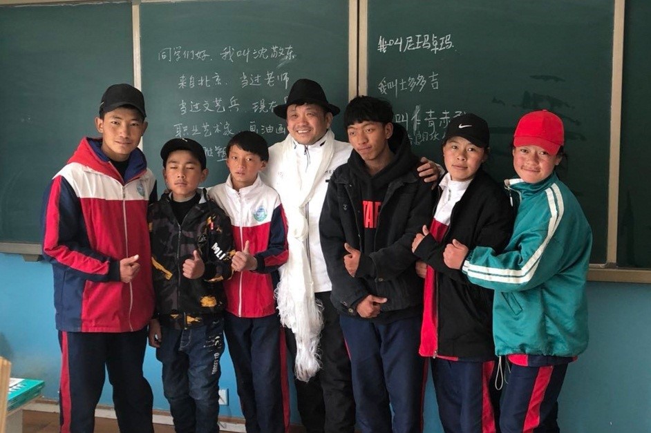 艺术家沈敬东、范学宜、高孝午、刘子宁老师,他们刚刚抵达西藏还来不及克服高反不适就来到学校,每个人都打起十二分的热情,为孩子们开启了一堂有趣难忘的课程,每个艺术家老师都有自己的独家授课秘方。