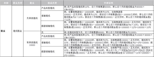 2、提成租金(也称为:扣率租金、扣点租金或抽成租金);