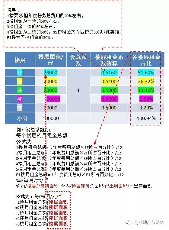然后设定楼层租金系数,测算楼层租金占百分比: