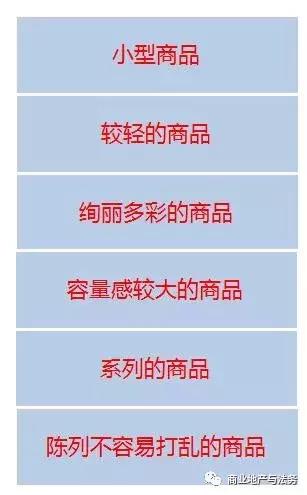 通常对于收银口的陈列顺序,按照物理特性会以以下顺序摆放: