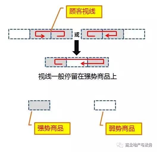 3、视觉巡视路径。通常情况下,人的视线习惯由左至右,由上至下,由前往后,由中心向四周运动。这一运动规律主要是受书写阅读习惯影响而形成的,所以视区的顺位多是左上、右上、左下、右下。人眼的视线水平移动比垂直移动快,眼球上下运动比左右运动容易产生疲劳,高明的商超或便利店系统都会利用这些特点来进行摆放。